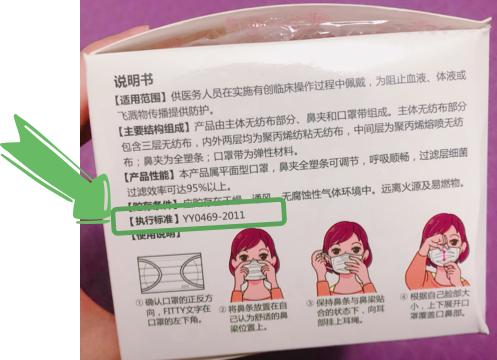 凡是在外包裝上標明上述4種標準編號之一的口罩,就可以起到防護隔離新冠的作用。(如下圖綠色箭頭所指)