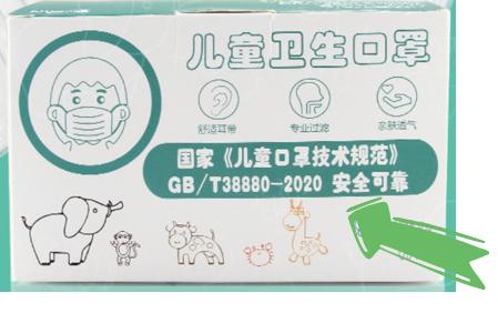 外包裝上標有“GB/T38880-2020”字眼的即是國標生產(chǎn)的兒童口罩,適用于6歲至14歲兒童;