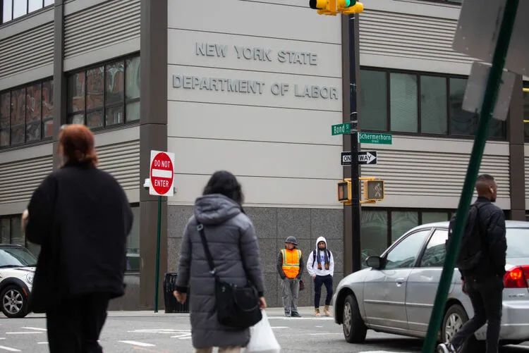1月8日,在美國紐約,行人從紐約州勞工部大樓附近走過