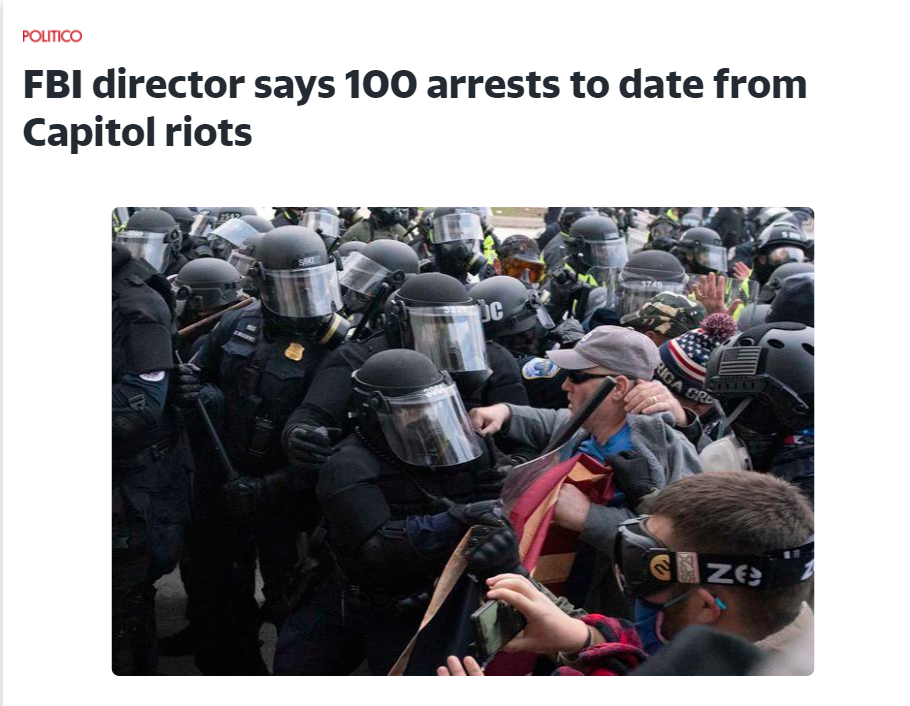 5、國會騷亂后 FBI局長首次公開露面:已逮捕100多名涉事人員
