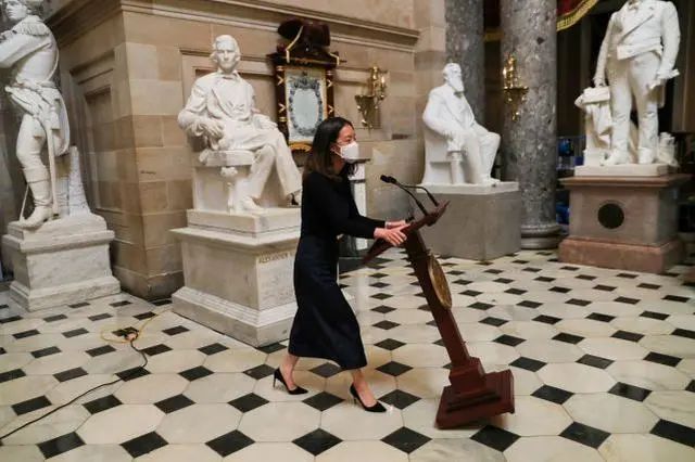 7、佩洛西被搶走的講臺重回國會大廈 還被用在彈劾總統(tǒng)儀式上