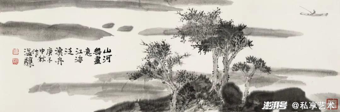 溫驤《山河無盡意 江海泛漁舟 》2020年作 80×26.5cm
