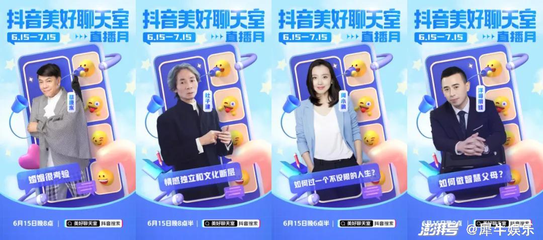 事實上,此次《蔡康永的聊天室》只是“抖音美好聊天室直播月”(6.15-7.15)系列知識直播的一道“開胃菜”。在整一個“直播月”中,還會有15位身份各異的抖音主播開啟聊天室,圍繞婚姻、生活、情感、工作、健身等話題,為網(wǎng)友們解疑答惑。