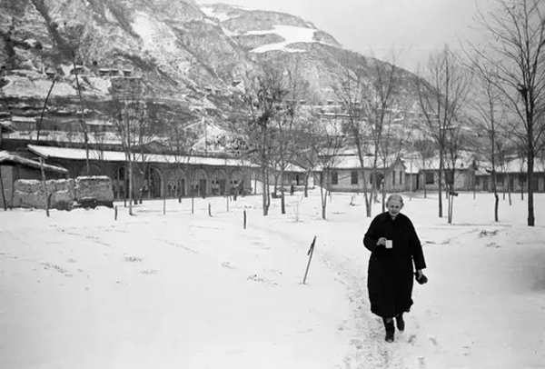 “路況之差,使得我們只好緩慢前行。即使輪子上纏著鐵鏈,也無法阻止汽車順著陡峭的山坡向后滑。好幾次,車隊還得從萬丈深淵 上晃晃悠悠地經(jīng)過,讓人直捏一把冷汗?!毖赝窘?jīng)過三原、宜君、洛川、鄜縣、甘泉等集鎮(zhèn),往往都是車隊住宿休息之地,博薩特真實記錄了那個時代這些陜北小鎮(zhèn)沿街的建筑風(fēng)貌和人情事態(tài)。行程中,越是接近延安,博薩特看到越來越多的青年學(xué)生徒步奔赴延安。每當車隊經(jīng)過他們身旁,都會彼此招手致意。此情此景,讓這些外國記者感觸良深。博薩特說自己此行仿佛看到了另一種麥加朝覲的情景。