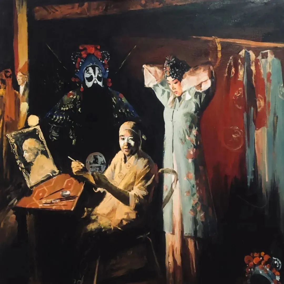 前情提要有點長,陳蘭馨放下紙扇,喝了一口冰美式,我們開始看展。展覽位于特想藝術(shù)空間二樓,共計展出了逾60組作品,涉及川劇老物品、油畫、水墨漫畫、石版畫、丙烯畫、裝置、影像、陳設(shè)創(chuàng)新等,試圖將大多數(shù)觀眾對川劇的刻板印象打破,每個人看完會產(chǎn)生什么樣的化學(xué)反應(yīng),那就仁者見仁了。先來看看部分作品。