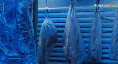 冷庫里。有人拿來一塊油紙,包住了一個……人。