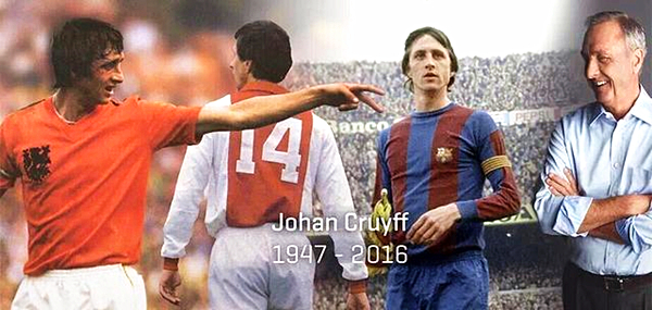 3月24日,荷蘭足球名宿約翰·克魯伊夫因癌癥不幸離世,享年68歲11個月。