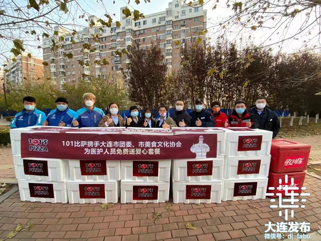 郝喜盛介紹,此次送餐行動由大連市美食文化協(xié)會、共青團(tuán)大連市委員會牽頭,計(jì)劃向大連市疾控中心、方艙實(shí)驗(yàn)室及管控社區(qū)的醫(yī)護(hù)人員、工作人員、社區(qū)志愿者送出5000份愛心披薩套餐。除了101披薩的18家門店負(fù)責(zé)配餐外,可口可樂公司也參與聯(lián)動,為防疫人員提供定制的姜可樂。