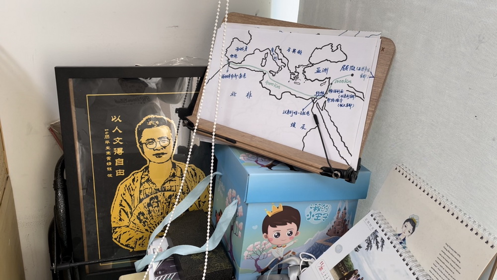 辦公室中放著學(xué)生標(biāo)注的《圣經(jīng)故事》地圖