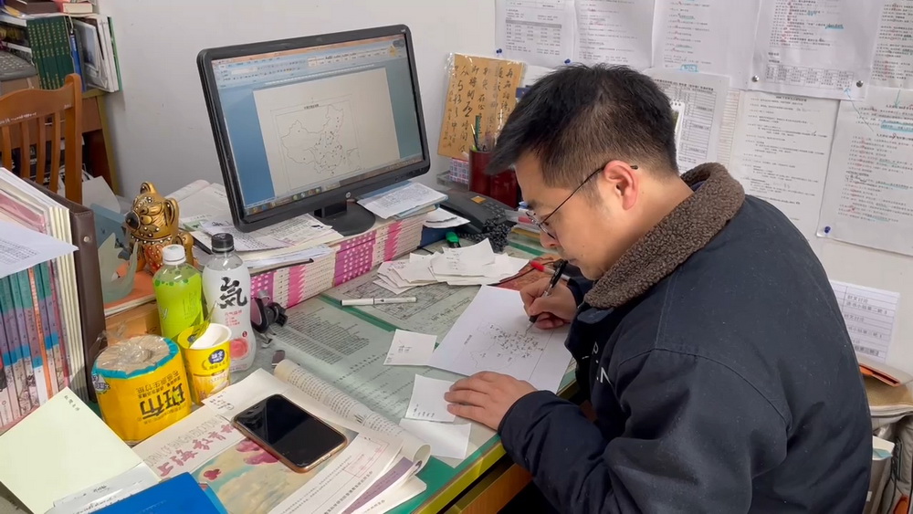 接受采訪前,樊陽(yáng)在批改學(xué)生的人文行讀課程作業(yè)——每位學(xué)生在紙條上寫下自己感興趣探究的三個(gè)省,再由樊陽(yáng)統(tǒng)一整理到一張班級(jí)探究地圖上。