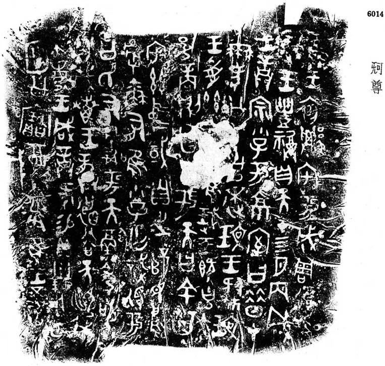 1963年出土于陜西省寶雞市陳倉區(qū)賈村鎮(zhèn)賈村的何尊銘文,上有“宅茲中或(國)”。