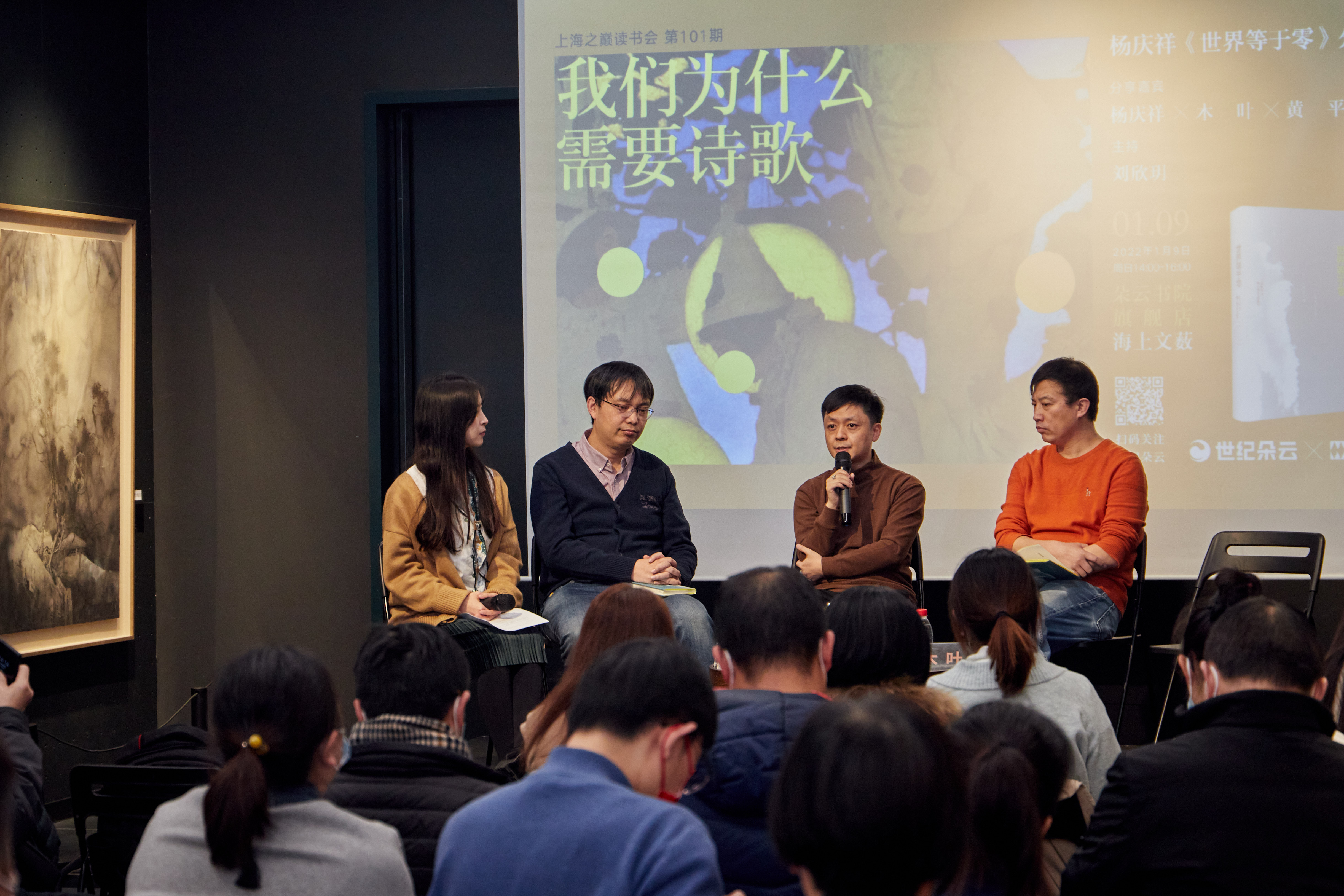 1月9日,楊慶祥與詩(shī)人木葉、華東師范大學(xué)教授黃平、青年批評(píng)家劉欣玥來(lái)到上海朵云書(shū)院·旗艦店,從《世界等于零》出發(fā),暢談今天我們?yōu)槭裁葱枰?shī)歌。