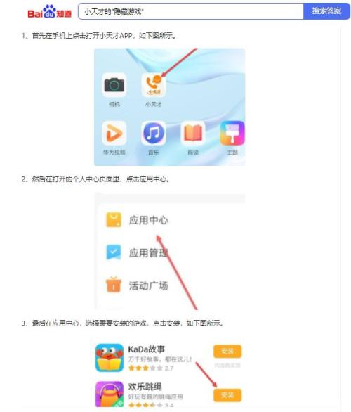 如今也有玩家發(fā)現(xiàn),小天才也有自己的“隱藏游戲”,你可以通過語音助手進入一個類似養(yǎng)成寵物并對戰(zhàn)的文字小游戲,雖然它依舊帶著學(xué)習(xí)屬性。在百度知道,也有用戶回復(fù)了進入小天才隱藏游戲的下載路徑與操作。