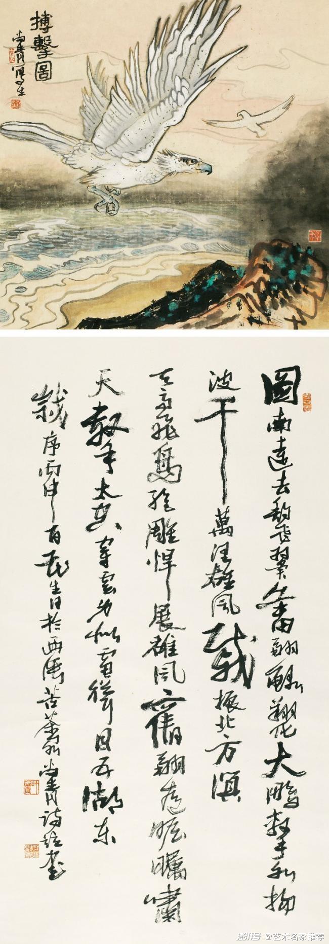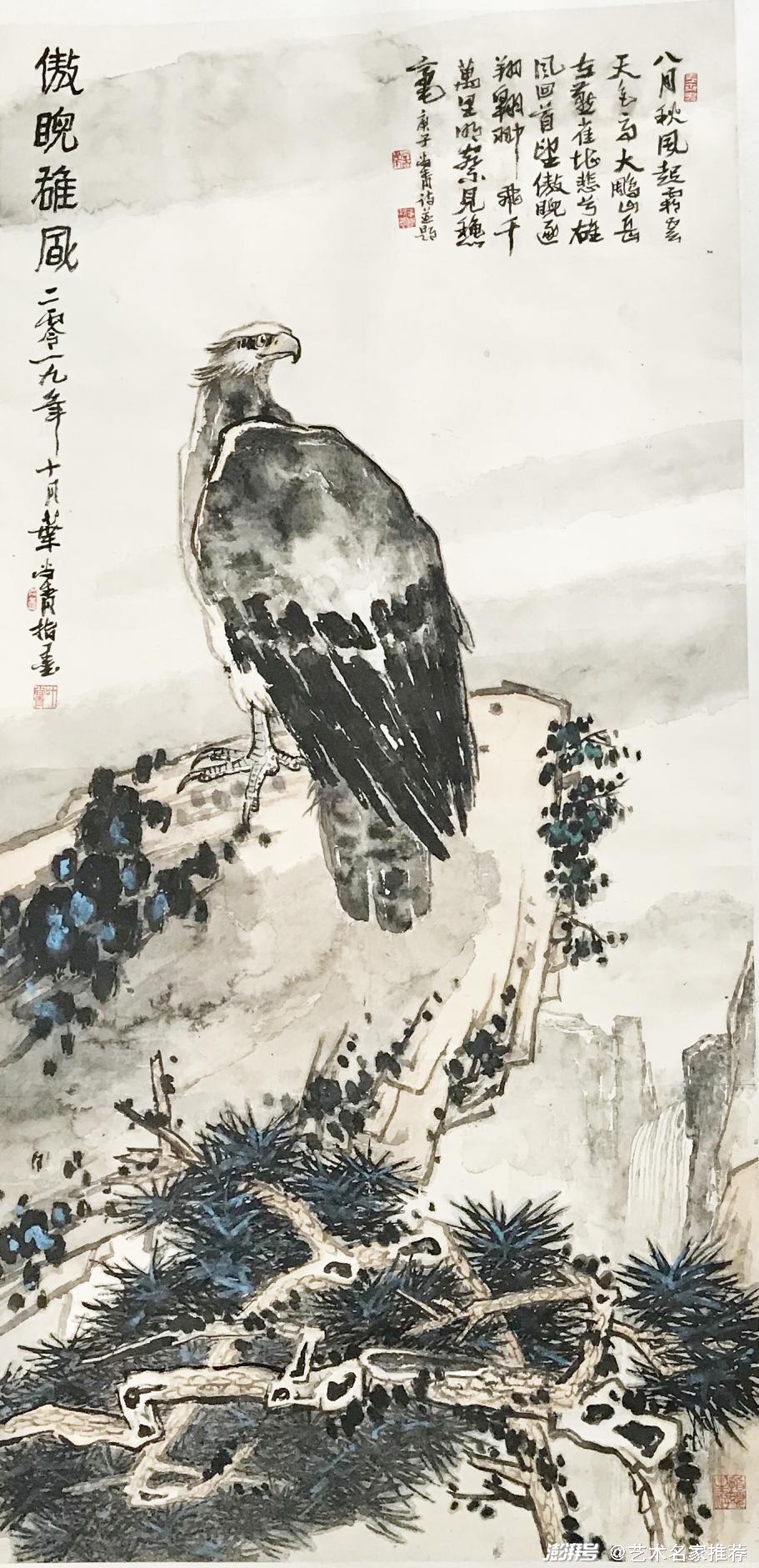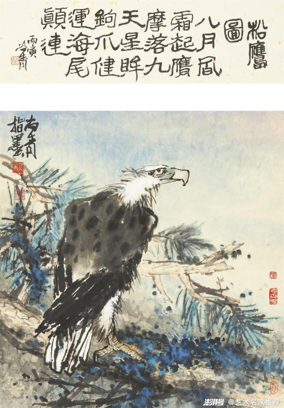 擅于,畫(huà)山鷹和海雕的雄視、威武、高瞻、英豪之勢(shì),激奮人們遠(yuǎn)大而廣闊的胸懷。