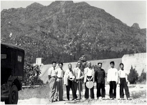 1963年葉尚青(左二)陪侍潘天壽、吳茀之兩位先生赴泰安講學(xué)