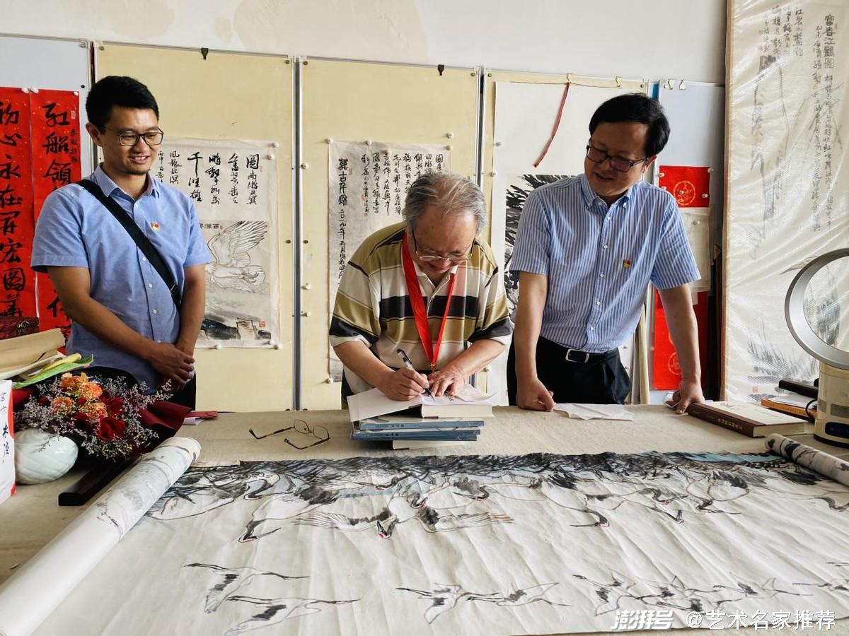 新作《百鶴詩(shī)書(shū)畫(huà)指墨圖卷》(長(zhǎng)15米),為建黨100周年而作。他于三十年前曾赴黑龍江丹頂鶴故鄉(xiāng)體驗(yàn)生活所作的素材,曾作二米多的長(zhǎng)卷,因不理想,今在原來(lái)的基礎(chǔ)上重畫(huà)之。他認(rèn)為這次所作突出了鶴舞翩翩、鶴鳴于皋的歡樂(lè)場(chǎng)景,以謳歌黨慶的煌煌巨制意境深邃,是他晚年的得意之作。