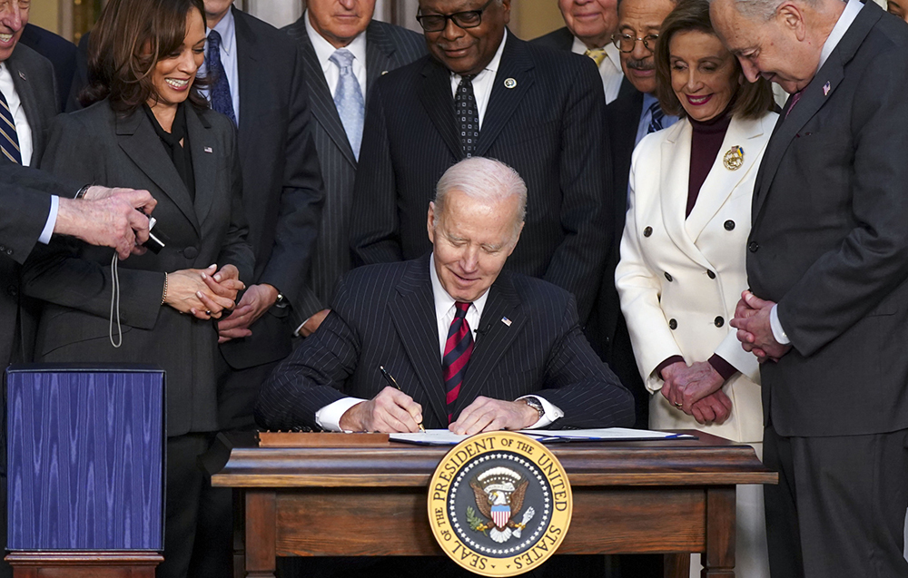 當(dāng)?shù)貢r(shí)間2022年3月15日,美國華盛頓,美國總統(tǒng)拜登簽署了一項(xiàng)總額為1.5萬億美元的法案。