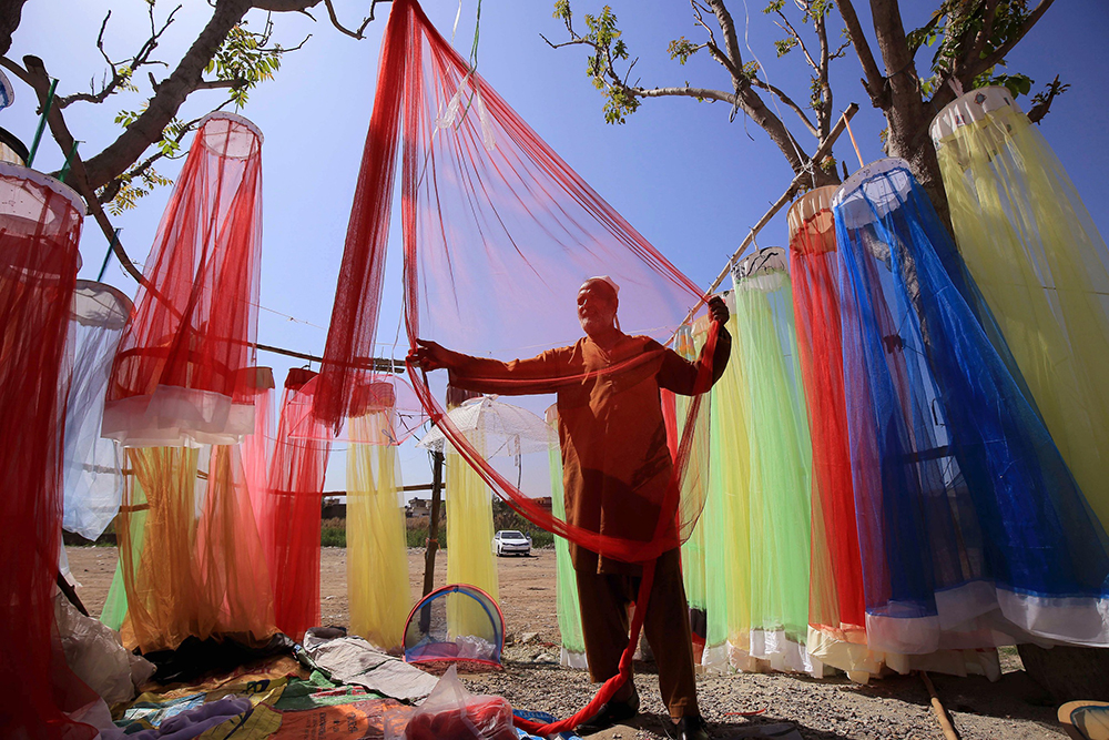巴基斯坦白沙瓦民眾出售防蚊蚊帳