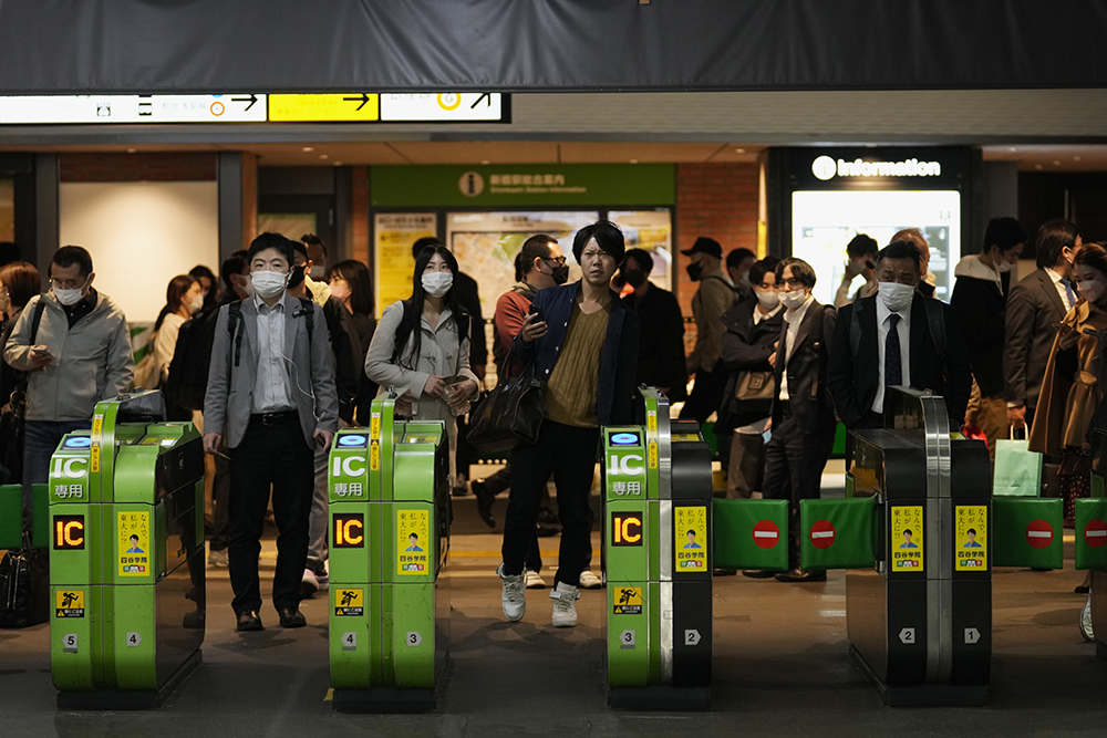 當?shù)貢r間2022年3月17日,日本東京,當?shù)匕l(fā)生地震,列車停運,人們在火車站等候。