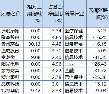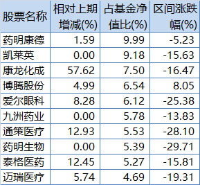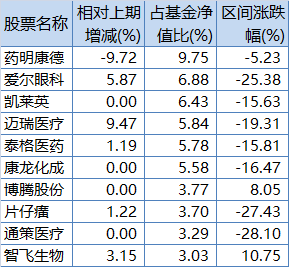 中歐醫(yī)療健康一季報(bào)前十大重倉股