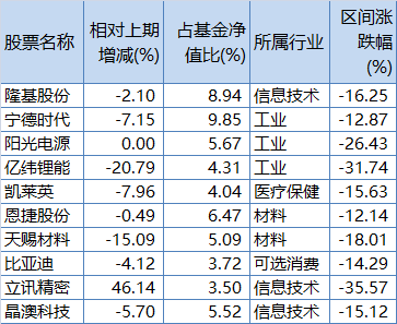 中歐明睿新起點(diǎn)前十大重倉股中,立訊精密獲大幅增持,新進(jìn)前十;北方華創(chuàng)則退出前十。