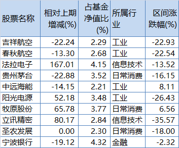 中歐價(jià)值發(fā)現(xiàn)一季報(bào)前十大重倉股