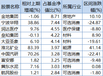 金地集團(tuán)(600383.SH)和壘知集團(tuán)(002398.SZ)被小幅減持,曲美家居(603818.SH)退出前十。