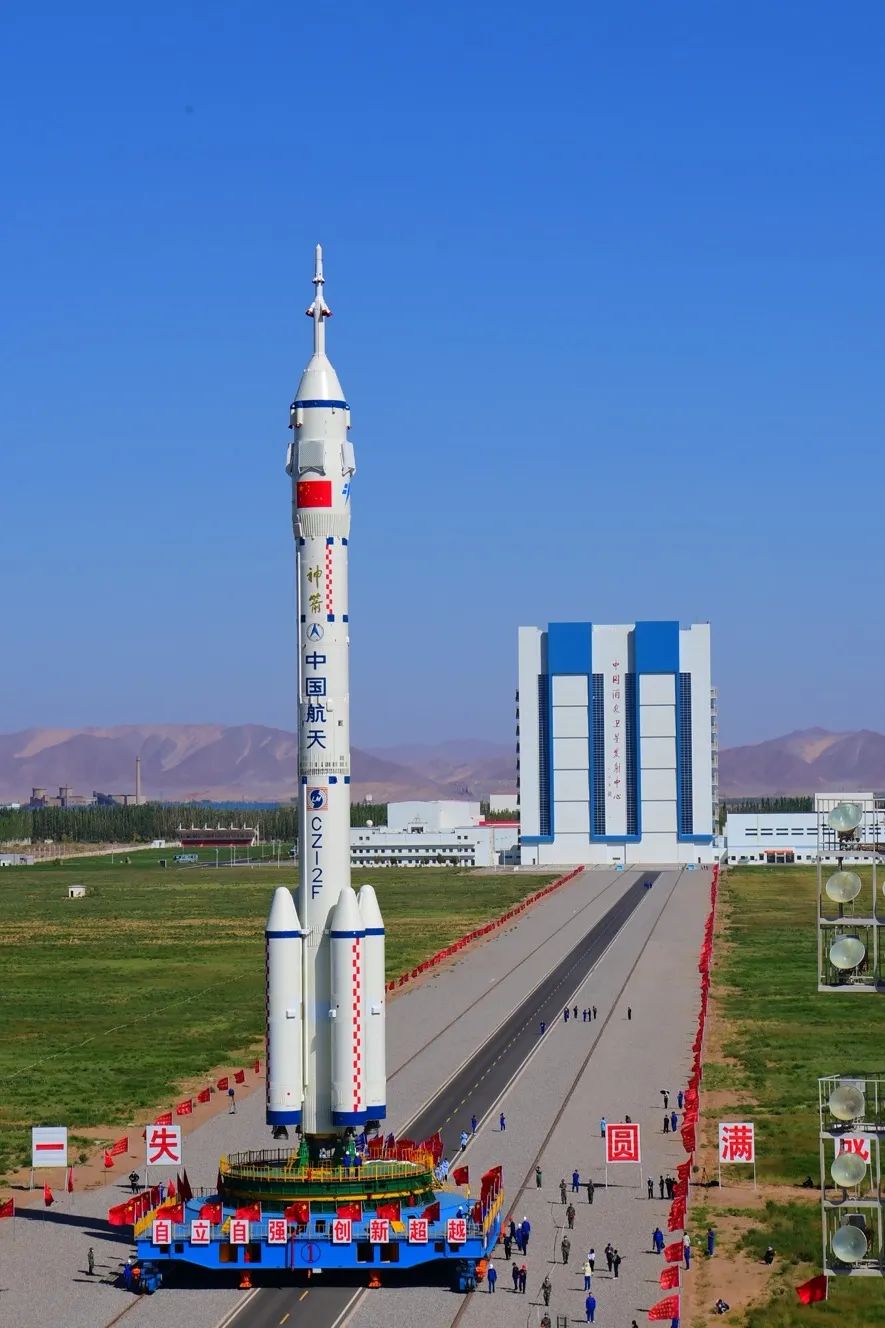 長(zhǎng)征二號(hào)F改遙十四運(yùn)載火箭與神舟十四號(hào)飛船組合體轉(zhuǎn)運(yùn)至發(fā)射區(qū)|劉芳 攝