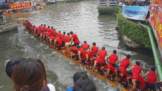 “要比過才知道!”慶云村作為往年的經(jīng)驗豐富的強(qiáng)隊備受大家的關(guān)注。龍船上的扒仔們聽著鼓點(diǎn)齊心發(fā)力順利沖刺,以高超的過彎技術(shù)、團(tuán)結(jié)整齊地快速劃槳,贏得現(xiàn)場觀眾的高聲歡呼與掌聲。