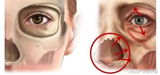 具體可以呈現(xiàn)為眼眶上緣內(nèi)側(cè)向上移動(dòng),使眉頭也隨之上移,給人眉毛外側(cè)下垂的感覺。眼眶下緣向外下擴(kuò)大,則加深了魚尾紋和眼瞼下的橫溝。