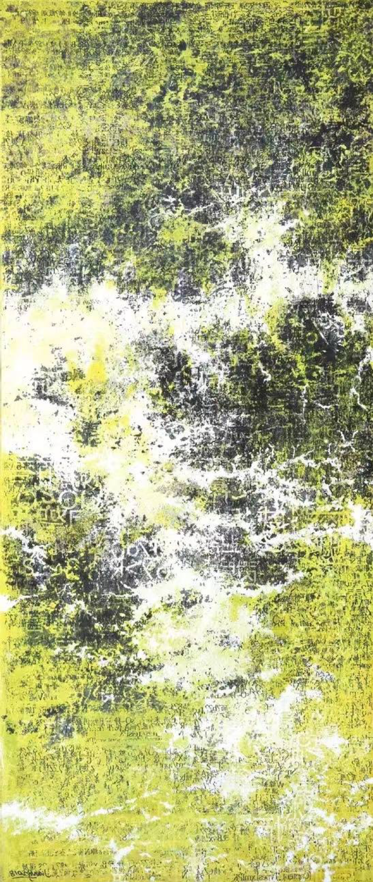 亂碼本身具備不可解讀性,因而給人以不可進(jìn)入性、拒絕感,本身就充滿了神秘魅力,蔣乃俊將宋詞文字進(jìn)行亂碼化,再與傳統(tǒng)山水文化元素、谷歌地貌相結(jié)合,產(chǎn)生一種新美學(xué)形式,是對(duì)中國(guó)傳統(tǒng)文化進(jìn)行升級(jí)、改造的一次探討、實(shí)驗(yàn)。