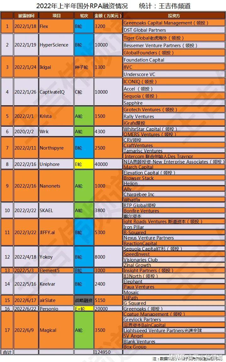 2022上半年全球RPA融資大盤點:A+B輪占六成,融資總額104億元