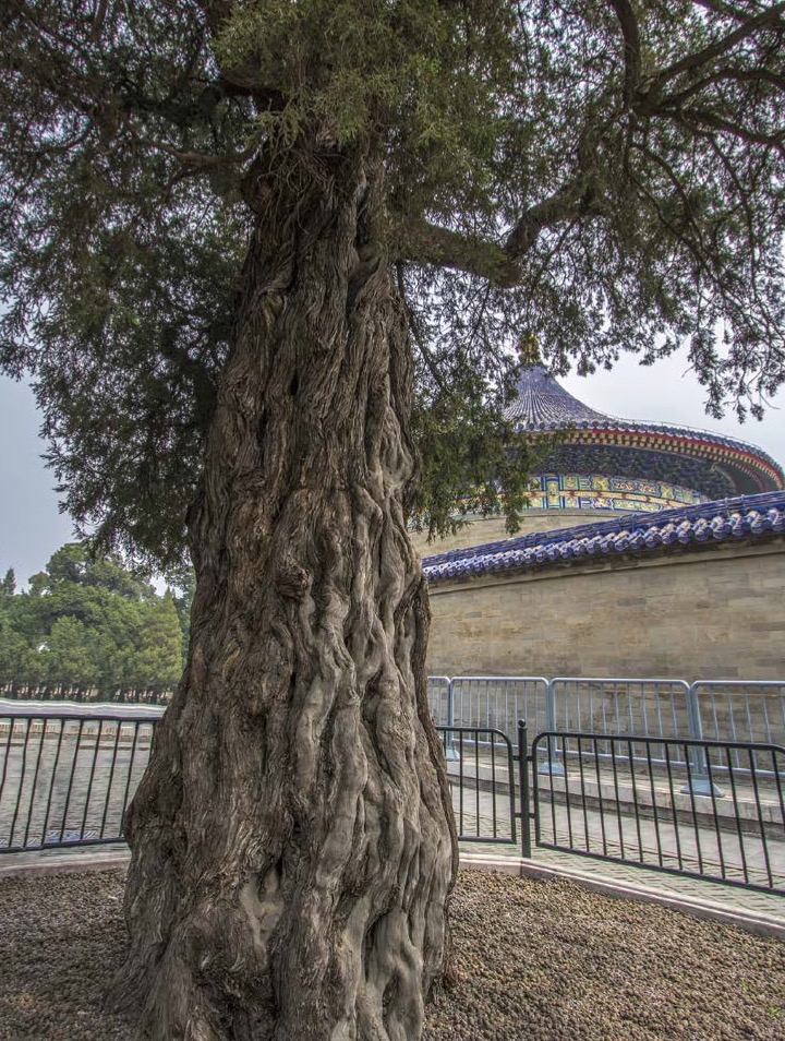 河南登封市嵩山腳下的嵩陽書院有兩株古柏,相傳在公元前110年,被漢武帝封為將軍柏。至今“大將軍”半躺半坐,主干傾斜約45度,腰圍約 6 米;“二將軍”雄偉壯觀, 主干左右劈開,而樹冠仍蒼翠蔥郁,如雄鷹展翅,成為全國聞名的古樹風(fēng)景。北京天壇的九龍柏更是奇特,主干自下至上有許多條交錯突出和凹陷的紋理,好像有許多蛟龍盤繞在一起,因而得名。據(jù)說全世界只此一株,它是樹木本身因細胞分裂不均勻而造成的病理現(xiàn)象,竟成了植物景中的奇觀。 泰山腳下的普照寺有棵古松,為六朝遺植。松旁立一亭,名篩月亭,取“古松篩月”之意。