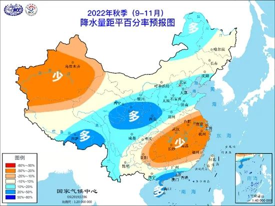 2022年秋季降水量預(yù)報(bào)圖及降水量距平百分率預(yù)報(bào)圖