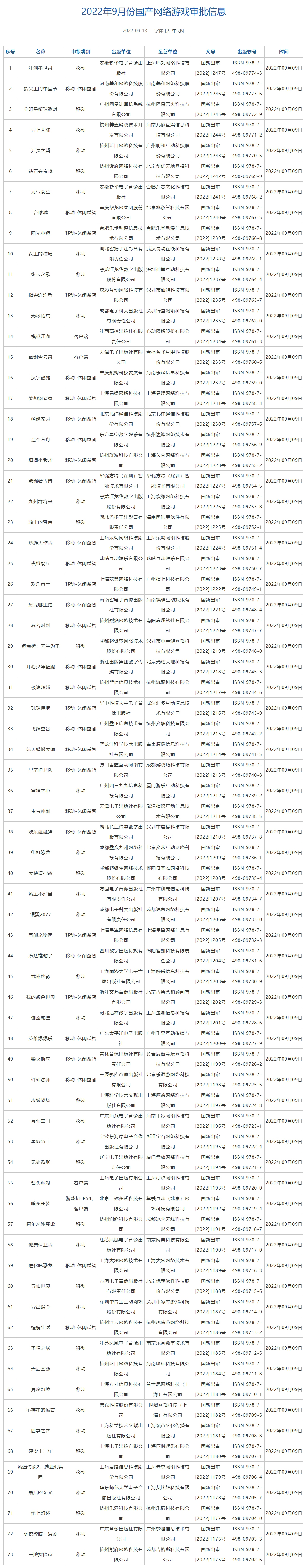 9月13日,國(guó)家新聞出版署官方網(wǎng)站公布9月國(guó)產(chǎn)網(wǎng)絡(luò)游戲?qū)徟畔?,?3款游戲獲批。澎湃新聞?dòng)浾甙l(fā)現(xiàn),獲批版號(hào)中包括網(wǎng)易、心動(dòng)網(wǎng)絡(luò)、中手游、邊鋒等多家知名廠商的游戲。