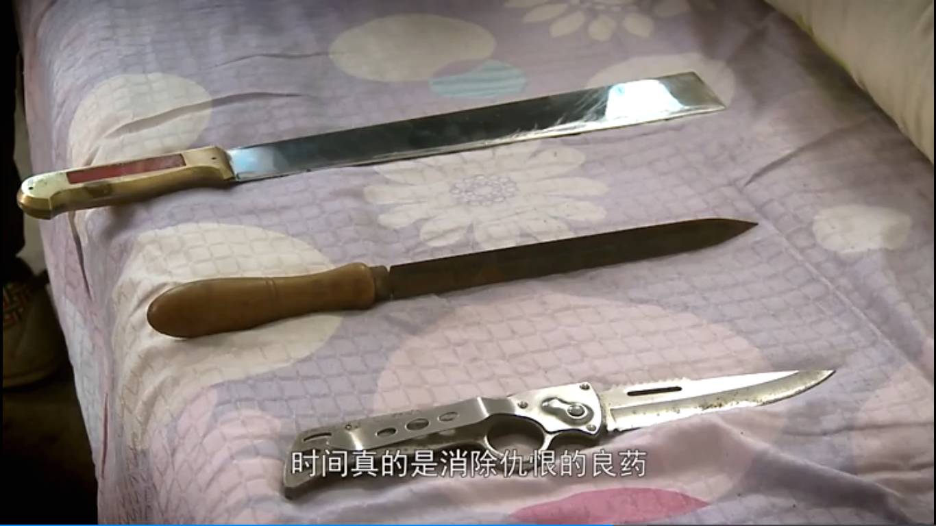 老杭的婚姻和老黃一樣也被另一個(gè)男人插足。老杭想過(guò)用很多種方法殺死搶走妻子的那個(gè)男人。也為此準(zhǔn)備了三樣?xùn)|西:砍刀、三棱刀、彈簧刀。