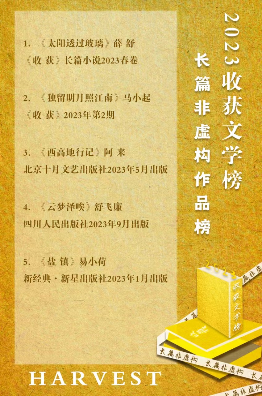 2023年收獲文學(xué)榜長(zhǎng)篇非虛構(gòu)榜