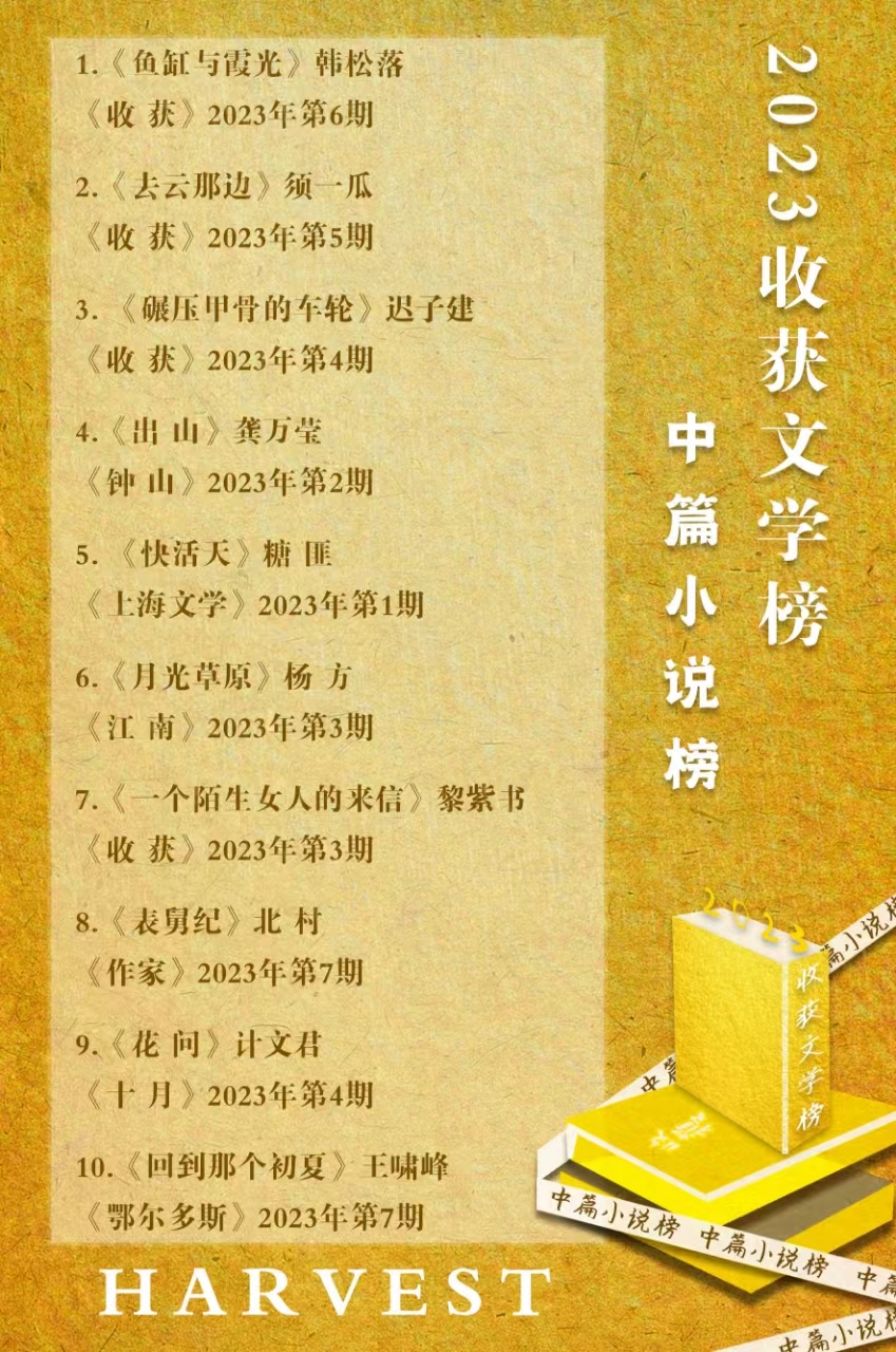 2023年收獲文學(xué)榜中篇小說(shuō)榜