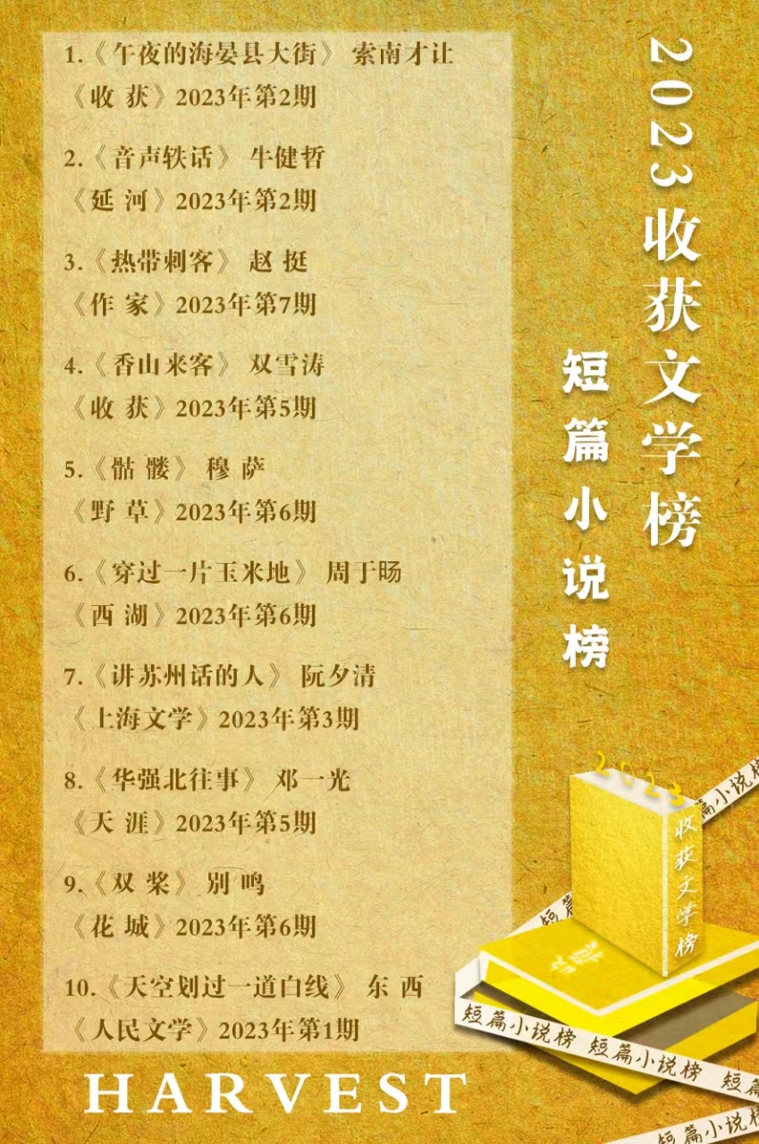 2023年收獲文學(xué)榜短篇小說(shuō)榜