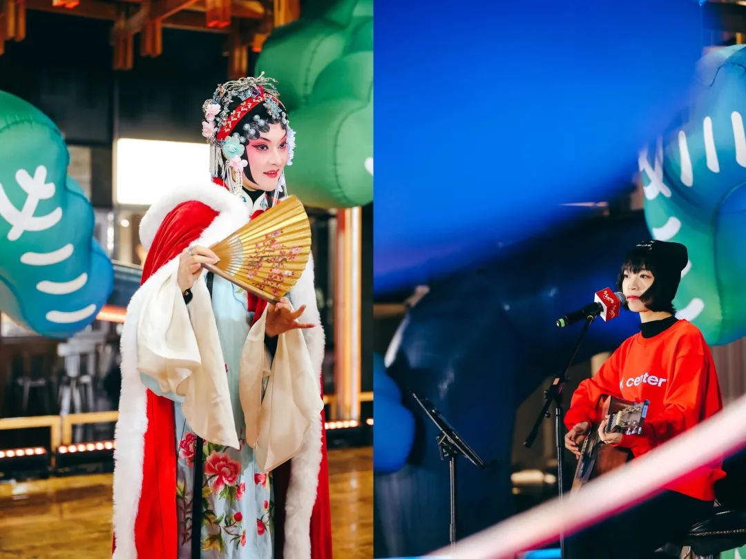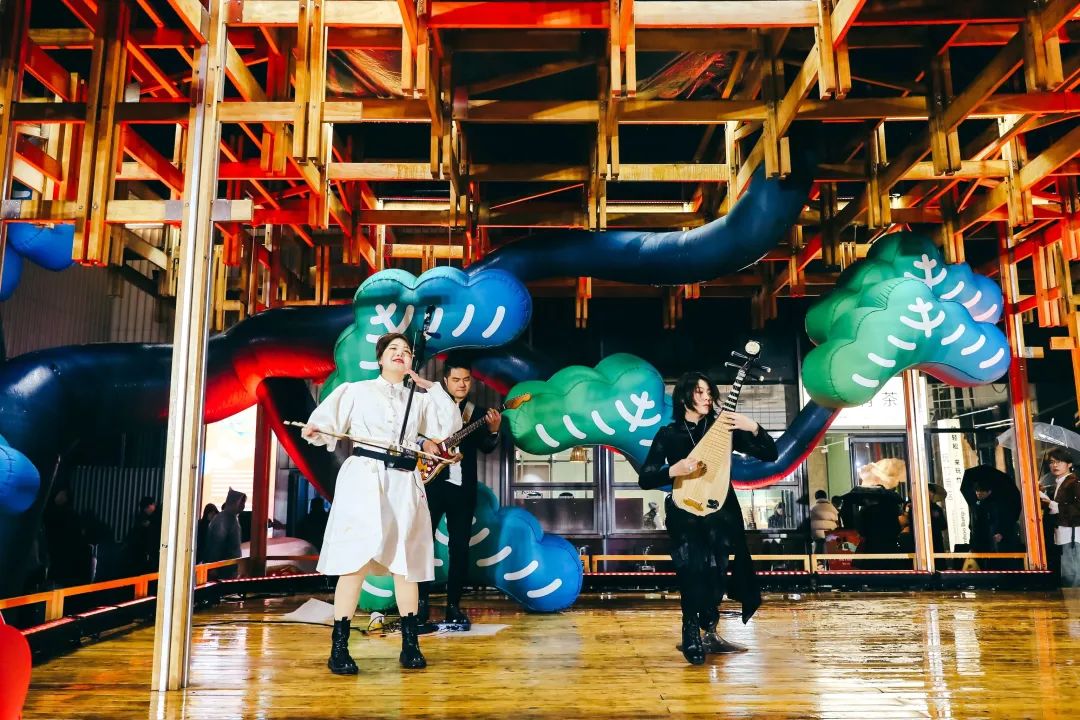 夜幕初上,龍華戲臺(tái)攜青年樂隊(duì)與傳統(tǒng)表演藝術(shù)家回歸,帶來戲曲、LIVE演出等傳統(tǒng)與現(xiàn)代交錯(cuò)的多元體驗(yàn)。投壺、糖畫、AR祈福等妙趣互動(dòng),以新式表達(dá)將傳統(tǒng)節(jié)日和民俗文化融入街巷日常,邀請(qǐng)市民共同譜寫喜氣圓滿的龍年。