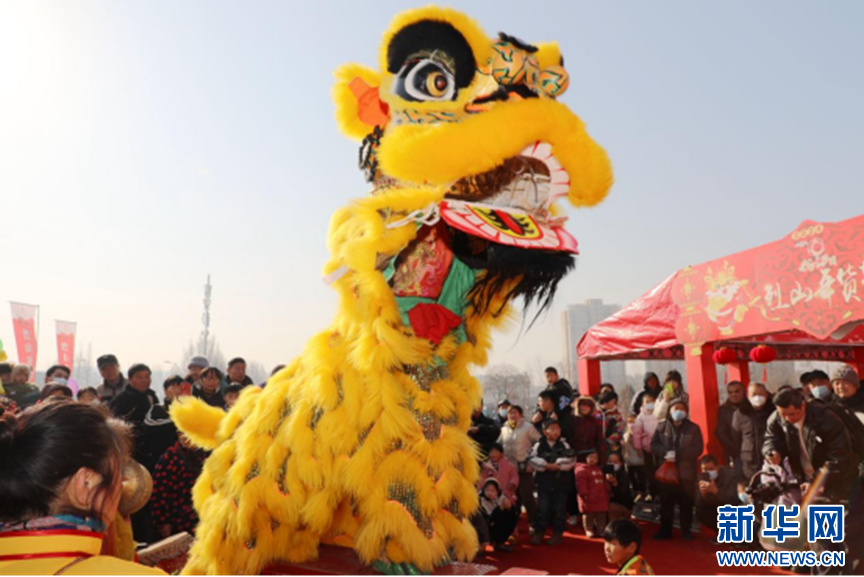 淮北市烈山區(qū)鄉(xiāng)村大集上的舞獅表演。圖片來源:新華網(wǎng)
