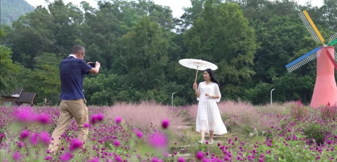 薰衣草、千日紅等花卉競相開放