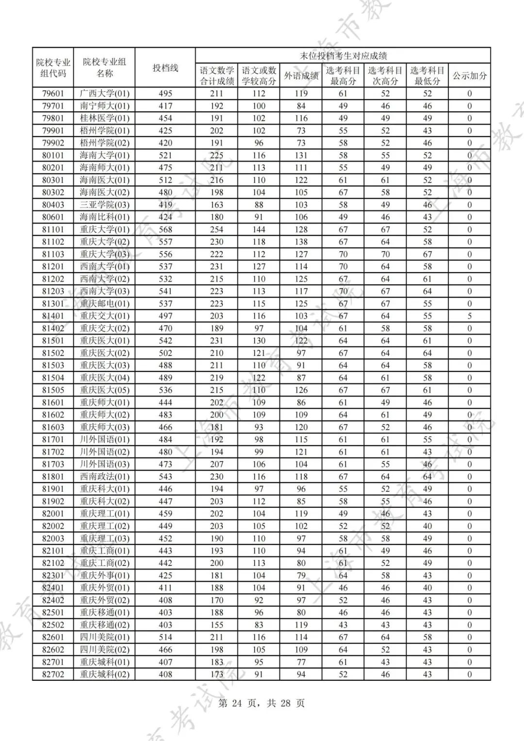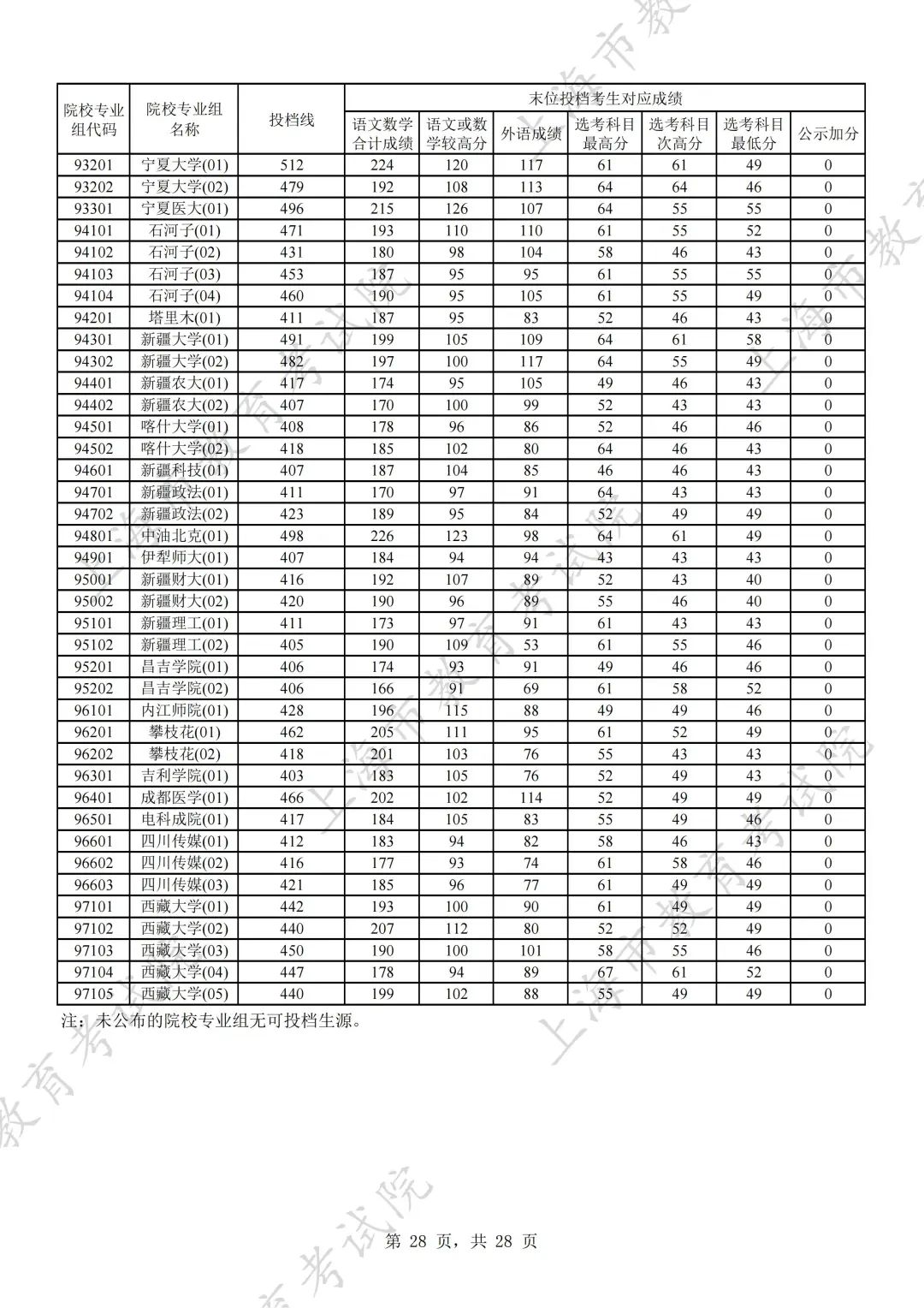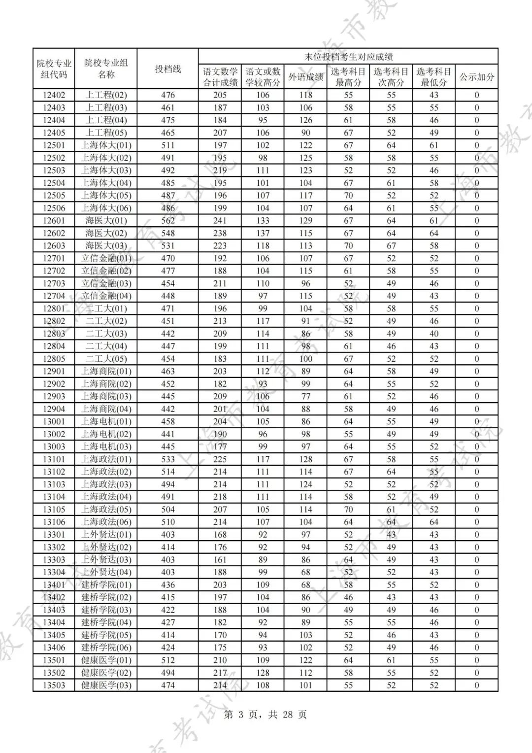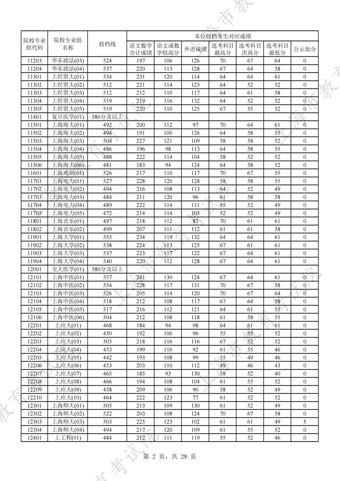 上海2024年本科普通批次平行志愿院校專業(yè)組投檔分?jǐn)?shù)線公布