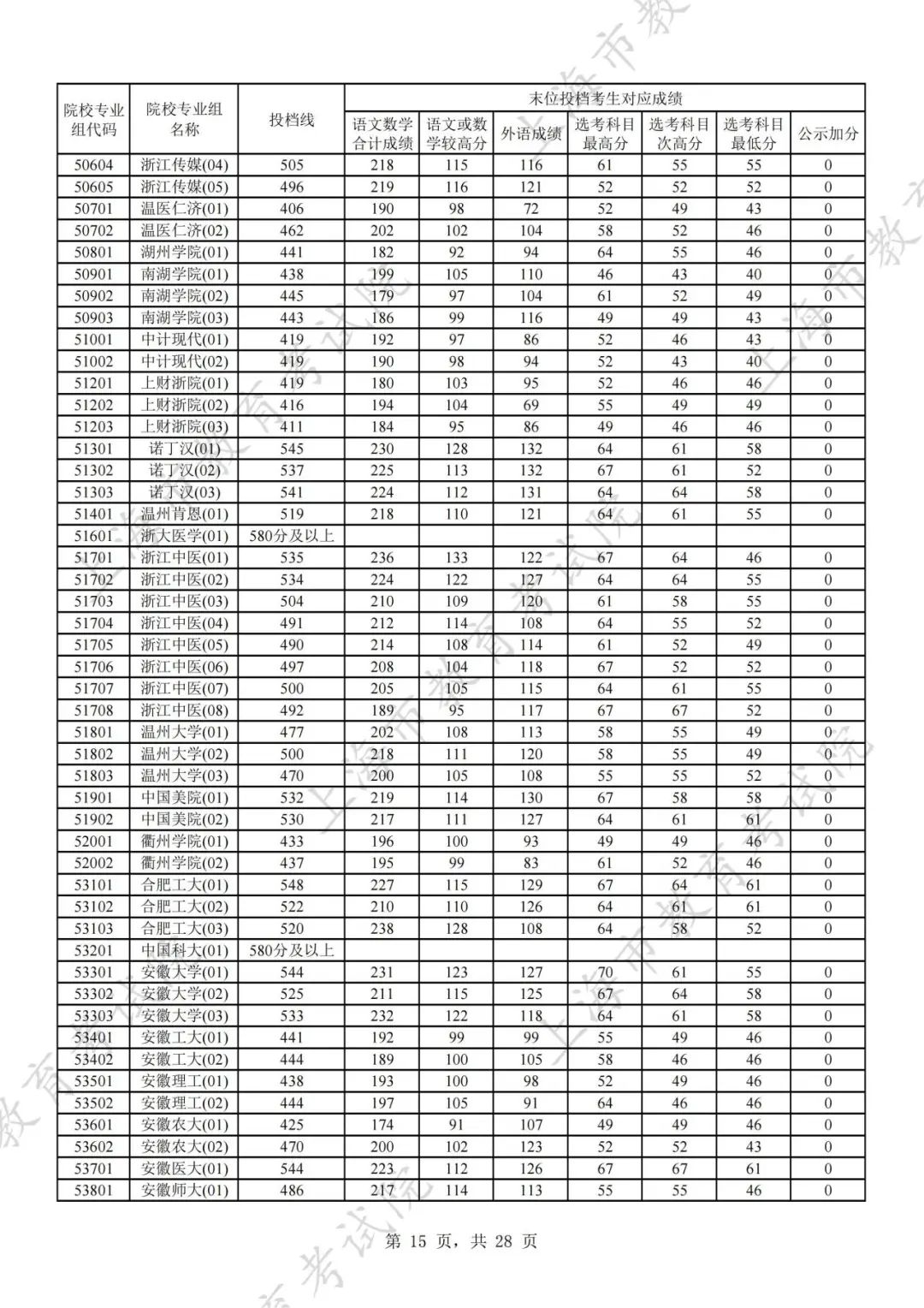 為貫徹落實(shí)教育部關(guān)于做好普通高考招生錄取工作的有關(guān)要求,積極營(yíng)造尊重考生興趣選擇的良好導(dǎo)向,避免發(fā)生炒作高分段考生投檔情況等現(xiàn)象,投檔分?jǐn)?shù)線在580分及以上的院校專業(yè)組不再公布具體分?jǐn)?shù)。參與本科普通批次投檔且高考成績(jī)?cè)?80分及以上考生的投檔信息將由市教育考試院會(huì)同相關(guān)中學(xué)逐一告知考生。