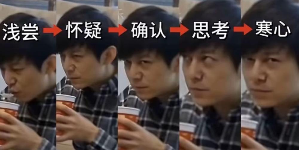 嘗到胡椒米稀的何炅,對著鏡頭貢獻了一段精彩的教科書式表演,在三秒鐘之內(nèi)切換了五種層次的情緒,這漫長的三秒仿佛度過了一個世紀(jì)。