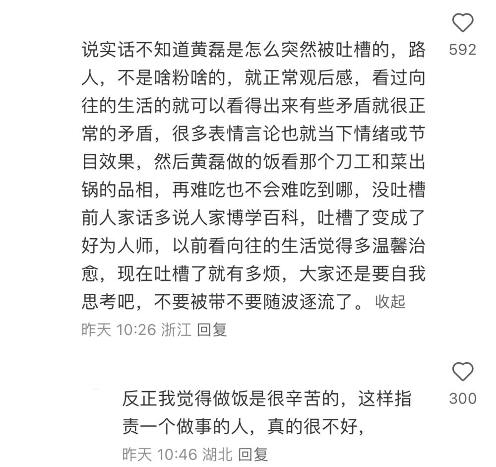 網(wǎng)友們也逐漸回過味來,紛紛在社交平臺為黃磊擊鼓鳴冤:無論如何,也不能揶揄一個辛苦了七季的人。