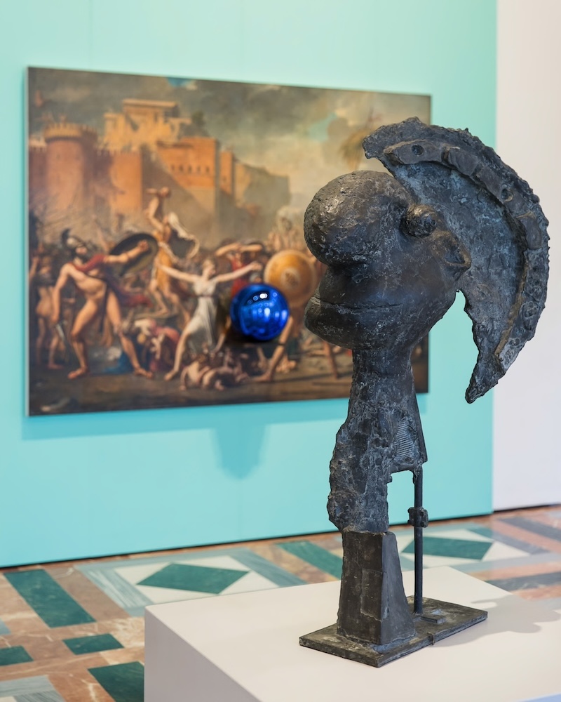 杰夫·昆斯的《凝視球(大衛(wèi)對(duì)薩賓婦女的干預(yù))》與古代作品并列。