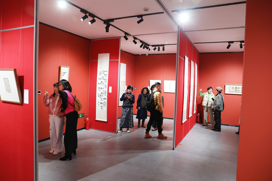 展覽主題為“汲古鐫新”,“汲古”是書法學(xué)習(xí)的重要方式,是對(duì)經(jīng)典古代碑帖的臨習(xí)、對(duì)古人書寫的體驗(yàn)、對(duì)古代經(jīng)典論述的解析、對(duì)古文字的識(shí)讀?,F(xiàn)場(chǎng)展出的作品均是兼具古代韻味與現(xiàn)代審美的書法作品。(宗和)
