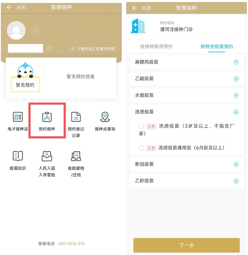 第二步:點(diǎn)擊【預(yù)約接種】-【按特定疫苗預(yù)約】