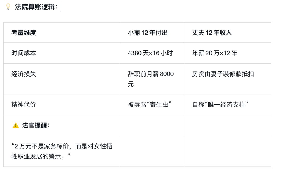 婚姻律師提醒:補(bǔ)償金額≠家務(wù)標(biāo)價(jià),而是對(duì)"機(jī)會(huì)成本"的認(rèn)可。真正的平等,是夫妻共同承擔(dān)家庭責(zé)任。